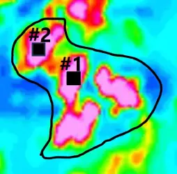 - Two areas (2) were not assessed so far. Area #1 corresponds to the northern part of the red triangle (alkaline granite). Area #2 is the northernmost tip of the red triangle and comprises an additional untested strong thorium anomaly.